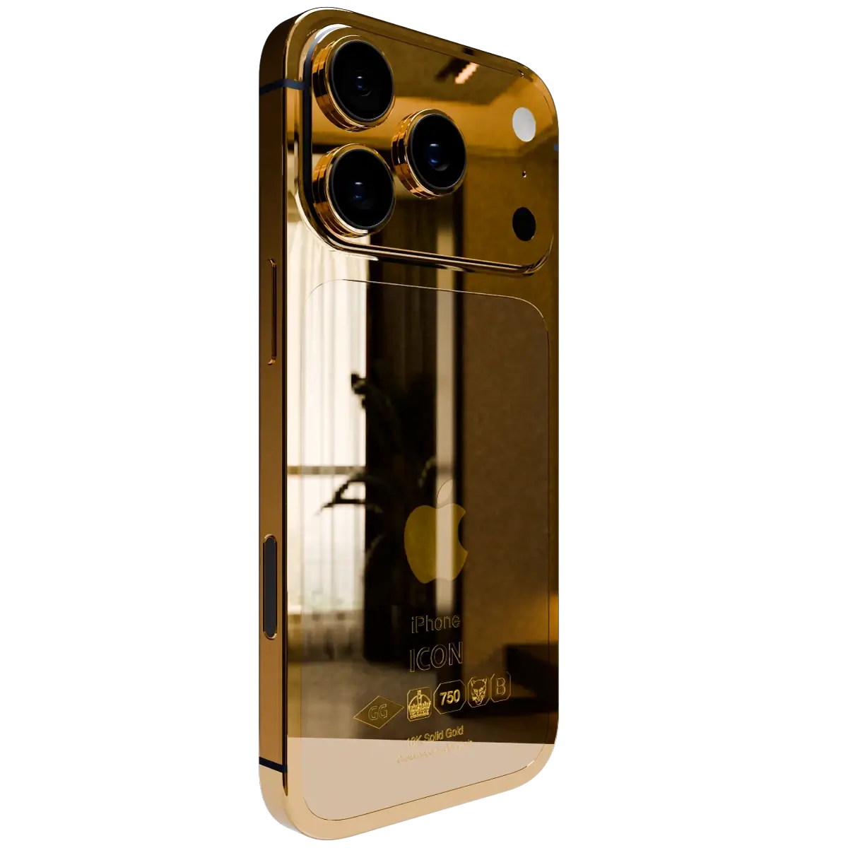 The ICON Limited-edition 1-50 solid 18k Gold iPhone 17 Pro and Pro Max is customised using a layer of pure 18k solid Gold on the rear of the iPhone by our in-house Goldgenie artisans and then stamped with our London Assay Hallmark . Order now.